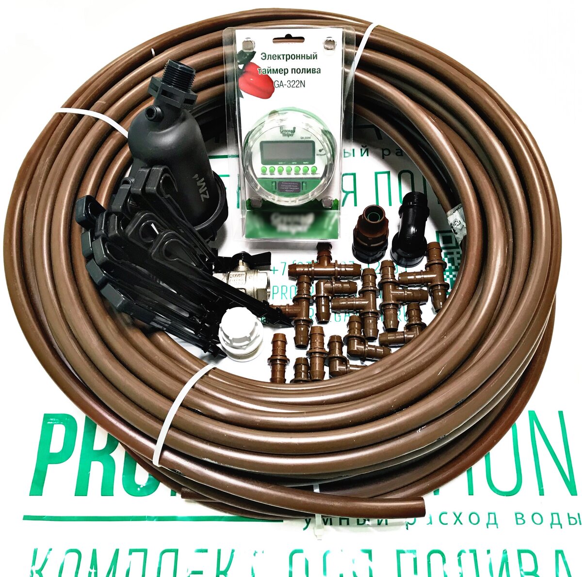 Стремясь сократить собственные трудозатраты и не потерять при этом в качестве полива, садоводы всё чаще теперь начинают применять системы автоматического полива на своих участках. На вопрос: «Можно ли приобрести качественную систему автополива без больших денежных затрат?» Ответ – «Да» , если речь идёт о локальной задаче, такой как полив теплицы. Читайте статью, будем разбираться из каких комплектующих состоит такая система и как она работает. Набор для капельного полива теплицы со встроенными капельницами Представляет собой линию капельной трубки с уже имеющимися капельницами. Шаг между капельницами составляет 33 см., что является оптимальным расстоянием для достижения необходимого эффекта перекрытия орошаемых зон. То есть этого расстояния достаточно, чтобы корневая система под поверхностью земли была увлажнена максимально равномерно. Комплектация набора: · Отвод из бака 3/4″ – 1 шт. · Кран 3/4″ – 1 шт. · Угол 3/4″ – 1 шт. · Фильтр сетчатый 3/4″ – 1 шт. · Контроллер GA-322N – 1 шт