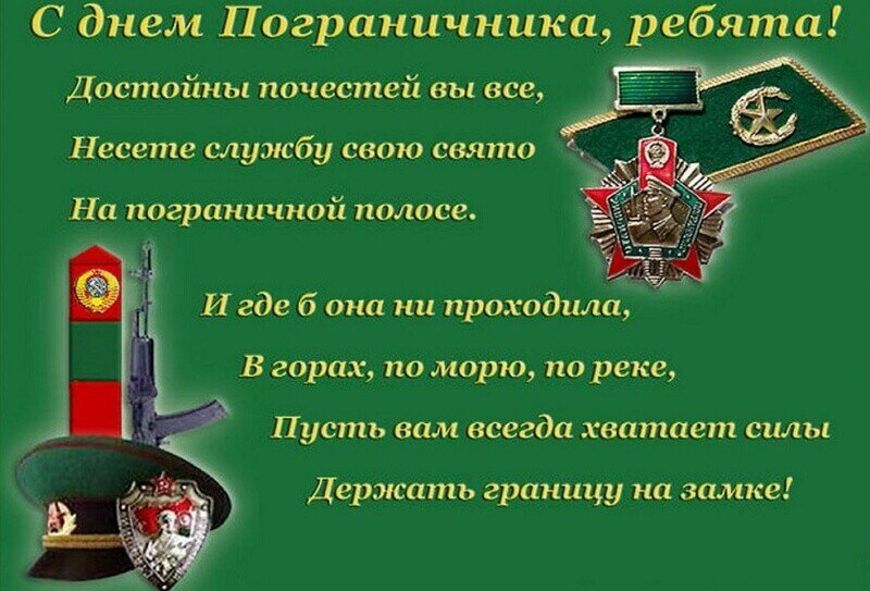 Завтра, 28 мая пограничные службы многих стран бывшего Советского Союза отмечают свой профессиональный праздник - День Пограничника. А для тех, кто служил в ПВ, праздник начнётся сегодня, в 20:00. Потому что в 19 часов проходит боевой расчёт, назначаются наряды на охрану госграницы и именно с 20 часов начинаются новые пограничные сутки Посмотрите, как проходит боевой расчёт. В России к этому празднику всегда относились особо. Бывших пограничников не бывает. И в этот день они достают свои фуражки, форму, словом всё то , что напоминает о годах, проведённых на границе. Звучат песни под гитару в парках, возле памятников защитникам Родины, вспоминаются армейские друзья, принимают поздравления ветераны, чтят память тех, кто погиб, защищая мирный сон граждан. Первые пограничники Советской России. 28 мая 1918 года декретом СНК (Совета Народный Комиссаров) учреждена служба пограничной охраны РСФСР. И поэтому этот день считается особым для пограничников. В Гражданскую войну, в
