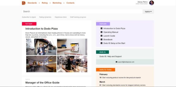 База знаний Додо создавалась 6 лет назад как блог на WordPress, — вполне объяснимый выбор для быстрого старта. Но жизнь в компании меняется очень быстро! И сегодня база знаний компании, — это неотъемлемая часть корпоративного портала. В которой публикуется вся основная полезная информация для управляющих пиццерией, менеджеров смены, отдельных категорий сотрудников. И которая работает как ключевой канал коммуникации.