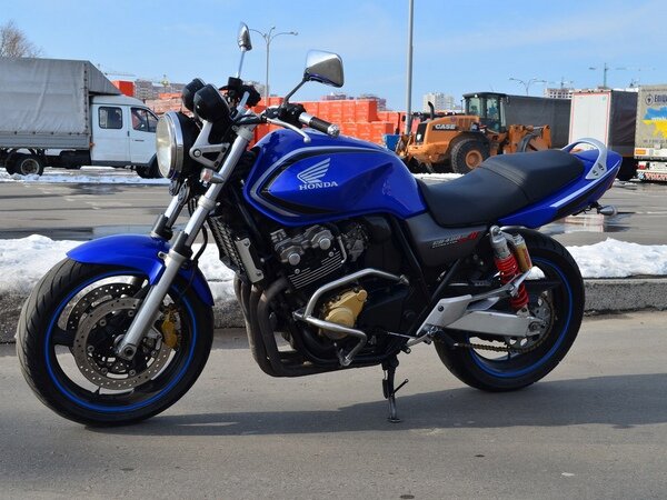 Корпорация Honda – мировой лидер по производству мотоциклов, и первая компания в Японии, которая поставила их производство на конвейер. В 1975 году публике был представлен новый мотоцикл компании с рядным 4х-цилиндровым двигателем среднего объема — CB400F, более легкая версия легендарной CB750. Двигатель воздушного охлаждения имел 2 клапана на цилиндр и развивал 37л.с. На мотоцикле был установлен передний дисковый и задний барабанный тормоз, а вес мотоцикла составлял 182кг. Это был первенец в ряду серии CB400. Обзор модели 40 лет эволюции и технического прогресса подарили нам сегодня достаточно мощный, компактный, красивый и хорошо оснащенный технически мотоцикл среднего класса – Honda CB 400 Super Four Hyper VTEC 4 версий REVO и BOLDOR. Мотоцикл оснащен 4-цилиндровым 16-клапанным двигателем водяного охлаждения с объемом 399см³. Машина создавалась для внутреннего рынка Японии, т.к. там действуют ограничения для начинающих мотоциклистов: объем двигателя не должен превышать 400 см³,