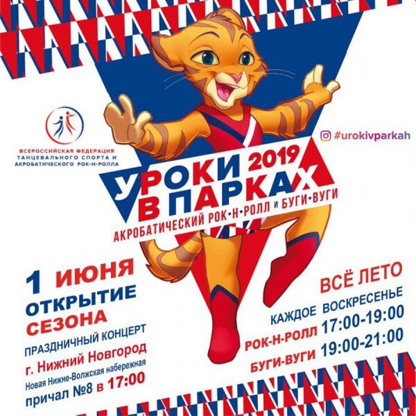 1 июня в Нижнем Новгороде стартует всероссийский проект «Уроки рок-н-ролла и буги-вуги в парках» Начиная с 1 июня и до конца лета, каждое воскресенье на Нижневолжской набережной (8 причал) будут проходить зажигательные мастер-классы по двум спортивным направлениям. Занятия по рок-н-роллу – с 17:00 до 19:00, а по буги-вуги – с 19:00 до 21:00. Любой желающий сможет принять в них участие совершенно бесплатно. Мероприятие проходит при поддержке Министерства спорта Нижегородской области,-Департамента физической культуры и спорта Нижнего Новгорода, Администрации Нижнего Новгорода. Организаторы – Всероссийская Федерация Танцевального спорта и Акробатического рок-н-ролла, а также Федерация Нижегородской области по акробатическому рок-н-роллу. Телефон для справок 8-905-012-85-56.