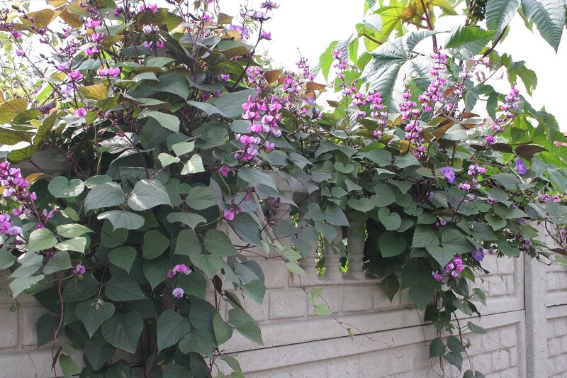 Многие садовые цветы имеют по два-три названия. Это значит, есть официальное название, используемое в каталогах, и есть так называемое «народное». Цветок, о котором пойдет речь, тоже имеет два названия. В простонародье его называют«декоративная фасоль», а в каталоге он значится как «долихос». Это однолетняя лиана. Листья и форма цветка напоминают овощную фасоль. После цветения образуются стручки с бобами. Вся красота этого растения – в его необыкновенной окраске: цветы, стебель и листья лилового цвета. Выращивание: посадка, полив, подкормки, опора Перед посадкой фасолинки лучше замочить. Для этого их заворачивают во влажный лоскут ткани или укладывают на смоченную бумажную салфетку. Буквально на второй-третий день появляются белые «клювики» росточки. Такие пророщенные семена высаживаются в открытый грунт после того, как пройдут первые заморозки, и земля хорошо прогреется. Бобовые – теплолюбивые растения. Поэтому не стоит торопиться с их посадкой. Как и все ц