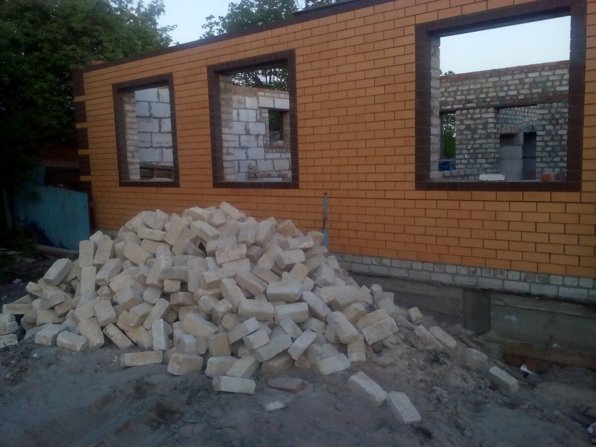 В настоящее время на рынке строительных материалов огромный выбор, начиная от дешевого эконом класса до премиальных брендов. На своем доме я всегда руководствовался правилом цена - качество. А также пользовался различными акциями и распродажами. При покупке 17 пачек облицовочного кирпича цвета солома в конце строительного сезона под зиму мне удалось сэкономить не много ни мало 30600 рублей, по осени пачка кирпича (352 штуки) вместе с привозом обошлась мне в 8700 рублей, тогда ка сейчас весной цена составляет 10500 рублей. Газоблоки я также покупал заранее, 30 кубов блоков по 2800 рублей куб с доставкой и разгрузкой, сейчас отпускная цена с завода составляет 3200 рублей за куб плюс накиньте сюда доставку и разгрузку, средняя экономия составила 20000 рублей. Чтобы сложить внутренние простенки дома я купил 5000 штук белого быушного кирпича по 6 рублей штука итого заплатил 30000 рублей, тогда как новый обошелся бы мне по 12 рублей за штуку красного, мало того что он в 2 раза дороже но и