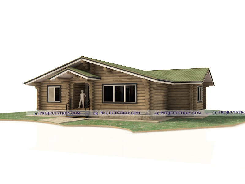 Загородный деревянный одноэтажный дом 15 х 13 м Проект из рубленого или оцилиндрованного бревна 280 мм - по желанию