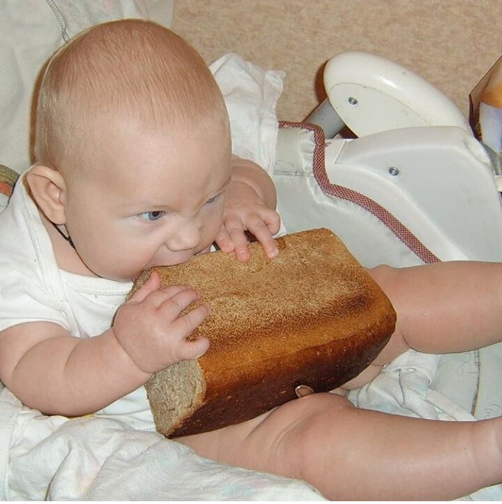 И прекрасно жевал младенец, даже деснами, без зубов - в полгодика крошку, в 10 месяцев - кусочек, в полтора - полную порцию, и в измельчении не нуждался, и прикус формировался правильный, и слюни не текли, и речь была - чистая. Потому что мышцы ротовой полости никогда не отдыхали - от мощного грудного сосания переходя к сильному жеванию 🌽 Отсюда вывод - хотите в будущем чистую речь у ребенка - идите путем наших предков 😁 И забудьте про баночки и блендер.
