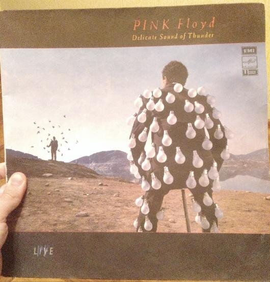Приветствую! Помню, лет 8-10 назад, среди моих неравнодушных к музыке знакомых, была волна интереса к виниловым пластинка. Я тогда яростно с ними спорил. Убеждал, что винил - это прошлый век. Что нет в нём никакого шарма и "ламповости". Что они все просто жертвы моды... Отчасти, я и сейчас придерживаюсь этих убеждений. Но сегодня я наткнулся на старую стопку виниловых пластинок. Испытал непреодолимое желание послушать, достал старый проигрыватель, ну и вобщем сижу, слушаю, пишу эту статью. А играет у меня сейчас концертник Pink Floyd 1988-го года "Delicate Sound Of Thunder". Пластинка 90-го года. Издательство - "Мелодия". Delicate Sound of Thunder - это двойной концертный альбом Pink Floyd. Чтобы его записать Группа отыграла 5 концертов, после чего альбом был собран из наиболее удачных вариантов. Подход впечатляет и достоин быть примером. Дэвид Гилмор утверждал, что в альбоме нет никаких студийных наложений. Однако, бытует мнение, что в песне "Comfortably Numb" наложена акустическая