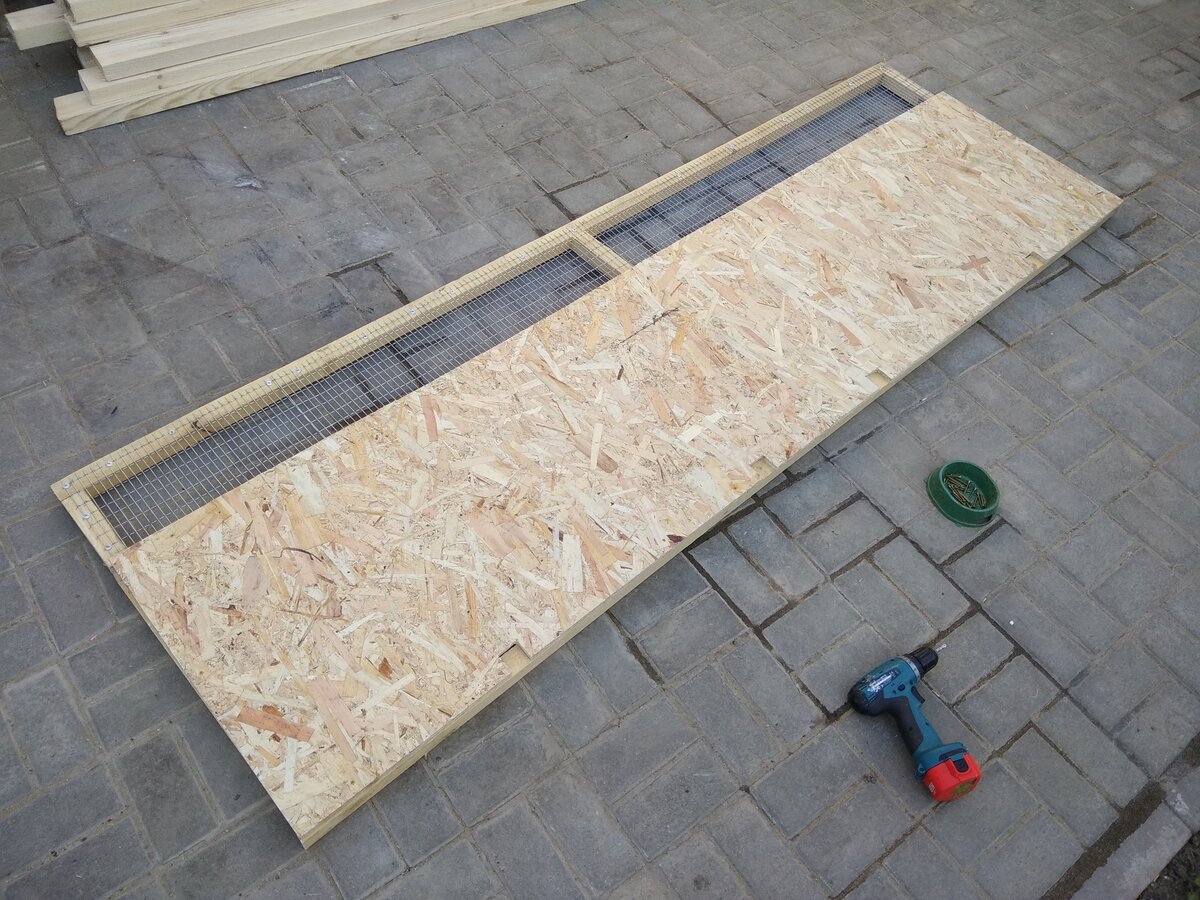 Спустя несколько лет после переезда из городской квартиры в собственный дом, наконец-то решились завести кроликов в своем домашнем хозяйстве. Чтобы курам скучно не было)). Да и экономическая ситуация в стране заставляет задуматься над ведением домашнего хозяйства. Еще с зимы было проштудировано множество сайтов с информацией по кролиководству, чертежами клеток, описанием особенностей ухода, видеороликами по обустройству кроличьих клеток. Из всех видов своей простотой, основанной на многолетнем опыте, подкупили клетки, построенные по методу Н.А.Золотухина, кроликовода с огромным стажем. Перед майскими праздниками был закуплен необходимый строительный материал: - брус 50*50 - 4 шт. по 2,5м(на стойки)+3м на подпорки; - брус 40*40 -около 65м(на каркас клеток,дверцы); - лист ОСБ 12мм размер 1,25м*2,5м - 3шт(на полки и задние стенки); - доска 25*150 - около 40 м (обшивка клеток сбоку, настил крыши); - профлист - 3 листа размером 2м*1м ; - сетка металлическая оцинкованная- сечение 16мм*25м
