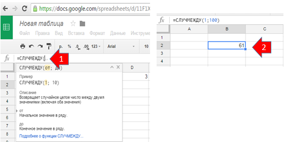 Таблицы Google. Копилка Разное 1.3 (Функция СЛУЧМЕЖДУ (RANDBETWEEN))