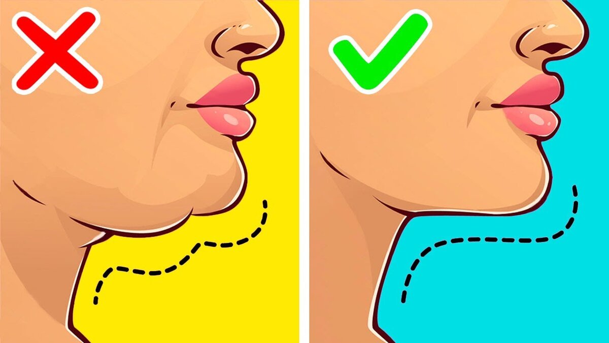 С возрастом многие женщины сталкиваются с проблемой второго подбородка. На причину его появления не обязательно влияет лишний вес. Вторым подбородком может обзавестись вполне стройная женщина, имеющая просто генетическую предрасположенность к его образованию. Сейчас избавиться от нависшей проблемы можно с помощью хирургического вмешательства, но не каждая рискнет это делать. Ниже представлены простые упражнения, которые можно выполнять в домашних условиях, чтобы избавиться от второго подбородка. Самым эффективным способом является гимнастика. Упражнения очень просты. Тут важно учесть, что на результат влияет регулярность их выполнения. В день заниматься нужно от двух до трех раз. На занятия у Вас уйдет не более 15-20 минут. Разминка. Она начинается с вращения головы по кругу. Делаем по 5 оборотов в одну сторону и другую. На фото показаны 4 упражнения, которые надо выполнять ежедневно. Первые результаты можно будет оценить уже через неделю. Рекомендую делать фото ДО и ПОСЛЕ, чтобы срав