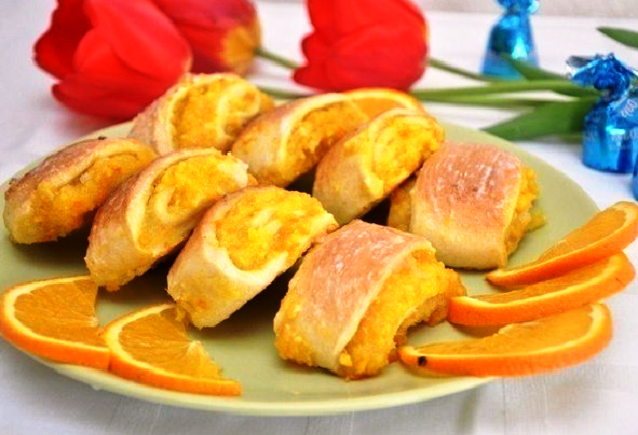Вкусно, просто и очень ароматно! Если вам захотелось устроить чаепитие с чем-нибудь эдаким необычным, рекомендую испечь апельсиновое печенье. Готовить его несложно, продукты нужны самые обычные, а результат вас наверняка приятно порадует - тонкое, рассыпчатое тесто в сочетании с кисло-сладкой ароматной начинкой как нельзя лучше гармонируют с чашкой горячего, ароматного чая. Итак, нам понадобится: Для теста: 2 стакана муки 80 грамм сахара 50 грамм сливочного масла сырое яйцо 3 столовых ложки сметаны пол чайной ложки соды щепотка соли. Для начинки: 160 грамм сахара 1 крупный апельсин столовая ложка картофельного крахмала. Простые рецепты сладостей к чаю ещё можно посмотреть здесь: Быстрый торт без выпечки "Муравейник" - вкусно и никаких хлопот Булочки "Ромашки" из бездрожжевого теста - редкая вкуснятина Необычные "Кружевные" блинчики - вкусно и красиво Сладкие гренки из черствого хлеба - быстрый и экономный десерт Булочки с корицей - ароматная выпечка на скорую руку Ход действий: 1