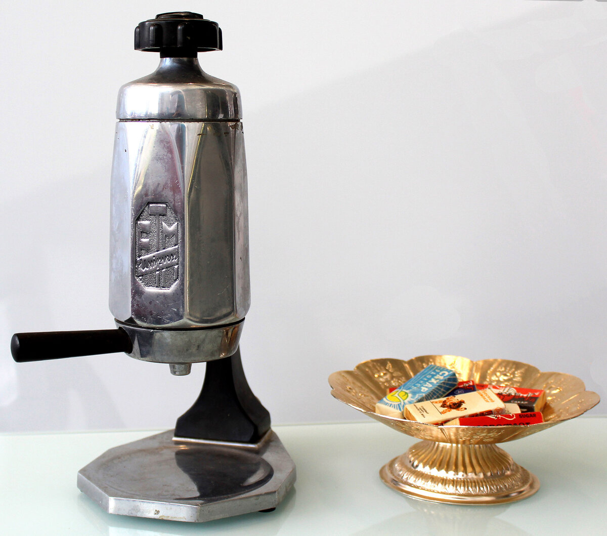 Электрокофеварки и кофемашины, как класс бытовой техники, стали появляться в СССР в 60-х годах прошлого столетия, медленно, но верно они начали занимали свое место в точках общепита и на кухнях прогрессивной части советского общества. Собственной конструкторской школы кофеварения Советский Союз тогда не имел, так что все аппараты были либо итальянскими, либо венгерскими. Особой популярностью, если такое можно говорить про времена тотального дефицита, пользовалась продукция венгерской фабрики FTM. Unipress был рассчитан на эксплуатацию домохозяйками средней квалификации, а так же мужчинами. Для приготовления одной чашки кофе требовалось залить в верхнюю емкость 250-300 мл. воды, в ситечко насыпать 2-3 чайные ложки молотого кофе, вставить ситечко в контейнер с ручкой и закрепить на нижнем фланце корпуса кофеварки, подключить аппарат к сети электропитания 220 V. В конце 60-х появился ее отечественный клон - кофеварка ЭК-0.3. Производитель: Московский электромашиностроительный завод "Д