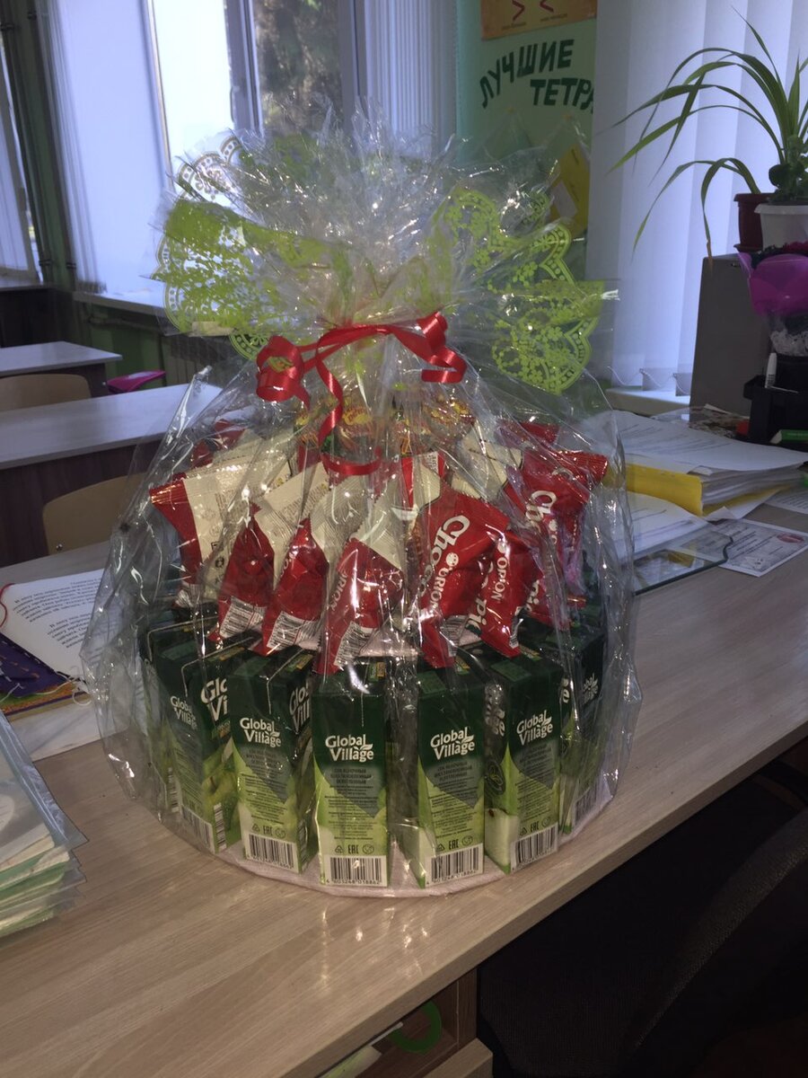 Торт из соков и конфет своими руками. Пошаговая инструкция.