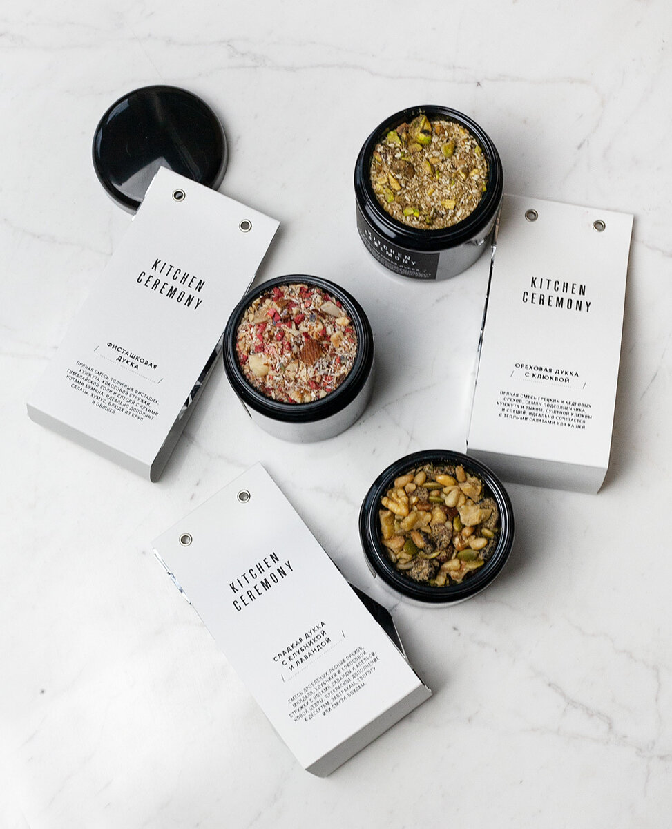 ДУККА - АРОМАТНАЯ И ОЧЕНЬ ВКУСНАЯ ПРИПРАВА, КОТОРАЯ ПРИШЛА К НАМ ИЗ СТРАН БЛИЖНЕГО ВОСТОКА И АФРИКИ. ГЛАВНЫМИ ИНГРЕДИЕНТАМИ ДУККИ ЯВЛЯЮТСЯ РАЗЛИЧНЫЕ ОРЕХИ, СЕМЕЧКИ И СПЕЦИИ, КОТОРЫЕ ПОДВЕРГАЮТСЯ НАГРЕВАНИЮ, А ЗАТЕМ ИЗМЕЛЬЧАЮТСЯ. В ЗАВИСИМОСТИ ОТ СОСТАВА ЕЕ ВКУС МОЖЕТ ВАРЬИРОВАТЬСЯ ОТ ТЕПЛОГО ПРЯНОГО С ЯРКИМИ НОТАМИ КУМИНА ДО ИСКРИСТОГО СЛАДКОГО ЗА СЧЕТ ДОБАВЛЕНИЯ ЯГОД. Дукка сразу стала одним из основных продуктов на нашей кухне. Она очень часто выручает когда хочется быстро приготовить что-то вкусное, простое и полезное. Достаточно просто посыпать этой пряной смесью салат, добавить в йогурт, кашу или крем-суп чтобы получить новое гастрономическое впечатление. Процесс приготовления Дукки не очень сложный, но требует времени на поиск ингредиентов и экспериментов с пропорциями. Мы решили упростить ситуацию и вместе с BAKEMEHAPPY labразработали три универсальные смеси, которые, слегка отличаются от традиционных рецептов за счет добавления ярких компонентов, и сочетаются как к основными б