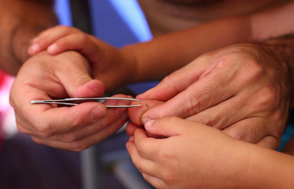 Эта неприятная травма - заноза, чуть ли не одна из самых распространённых, особенно в летний период. На днях на даче подцепила занозу, причём засела она достаточно глубоко. Обычно самую простую занозу (когда кончик торчит наружу), я доставала с помощью иголки и пинцета, но тут этими подручными средствами явно было не обойтись. Залезла в интернет, полазила по форумам и очень мне понравился способ с солёной ванночкой. В мисочку я налила горячую воду (50 мл) и добавила соль, чтобы раствор получился пересоленный и подержала там палец 20 минут, за это время кожа немного распарилась и затем с помощью иголки я докопалась до кончика занозы и пинцетом смогла её вытащить. Единственное, я читала, что если заноза деревянная, то долго парить нельзя, иначе деревяшка тоже разбухнет. У меня как раз таки была деревянная заноза, но она была настолько тоненькая, что там и разбухать нечему. Главное правило, перед тем как вытаскивать занозу - рану и все подручные средства нужно продезинфицировать, например