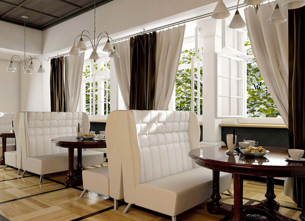 На что обращает внимание посетитель при посещении ресторана? В первую очередь – популярность, уровень обслуживания, особенности кухни и, конечно же, интерьер. В интерьере важна каждая мелочь, будь то скатерть на столе или шторы. Касательно штор, подбирать их нужно тщательно. Если совершить правильный выбор, то шторы добавят уюта ресторану; неудачный выбор, наоборот, испортит интерьер заведения. Немаловажным фактором является то, в каком стиле оформлен ваш ресторан. Для заведений, основными посетителями которых являются молодые люди (клубы, бары, кафе), наилучшим выбором будут шторы современного типа. В этих заведениях хорошо подойдут римские, китайские шторы или шторы-плиссе. Можно использовать шторы из недорогих тканей, главное, чтобы они были яркими и креативными. Если в ресторане есть столики у окон, то проследите, чтобы шторы не закрывали обзор и давали солнечному свету проникать в помещение. Тут лучше всего подойдут жалюзи или рулонные шторы– практичные и удобные. Если вы владе