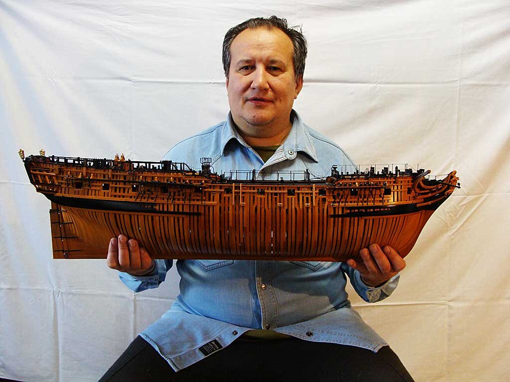 Всем привет! Я всегда хотел построить модель корабля так, как строили настоящий корабль. Поэтому моя особая любовь к адмиралтейским моделям. Увы, очень мало для таких кораблей сделано чертежей, потому что там важны все подробности. Обычно моделисты используют книги АНКРЕ. Но проблема в том, что эти авторы пишут только про французский флот. Для других стран они реконструкции не делают, им бы свое наследие восстановить. Многие моделисты, адмиралтейщики, вынуждены строить эти модели. Еще есть серия книг "Анатомия корабля". Это уже про английские корабли. Их тоже делают моделисты, но я их знаю намного хуже. Все иностранцы обычно бывают на англоговоряцем американском форуме и американцев-судомоделистов там намного больше. А они строят в основном свои американские модели. А мне всегда хотелось сделать модель как у нашего большого Мастера, Нарима Майгельдинова. Вот он со своей "Пандорой", построенной в 2008-2009 гг. Поэтому я очень был рад, когда на американском форуме появился блог мастера