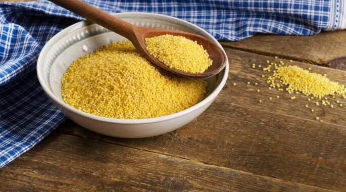 Все мы помним сказку «Али-Баба» и 40 разбойников». В ней Касым, жадный брат Али-Бабы, забыл название злака, который открывает дверь в пещеру с сокровищами. Перечислил все, которые знал, но камень, прикрывавший вход в пещеру, даже не шелохнулся. Первым словом, в перечне было просо. Это древнейшая зерновая культура, которую выращивали во всех частях света. О ней я и собираюсь вам рассказать. Ну, а ключом к разгадке было кунжут, название которого по-арабски звучит как сим-сим. Растение просо по своему виду напоминает кукурузу, только в уменьшенном виде. Стебли его кустиков достигают высоты полутора метров. Семена округлой формы размером не более 2-х мм в диаметре, преимущественно желтого цвета. Если их отшлифовать, то есть снять зародыш и оболочку в виде верхней кожицы, то получится всем известная нам крупа под названием пшено. В процессе превращения сырых зерен проса в пшенку, последняя приобретает золотистый цвет. Дело в том, что пшено, в отличие от большинства круп, содержит небольшо