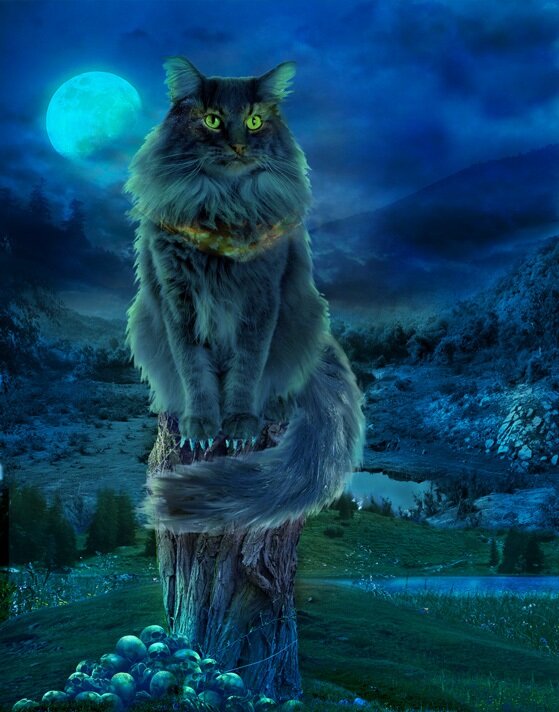 В современных произведениях и мультфильмах это умный заботливый кот, который и советом поможет и дорогу подскажет. Но таким его показывали не всегда. В легендах его описывают как чуть ли не самого опасного зверя леса. Там где завелся этот кот, и птица не поет и зверь не ходит. И если путник зашел в лес, где совершенно тихо, пускай знает - он на территории Кота Баюна. В скором времени путник начинает слышать песни, стихи и различные рассказы. Его начинает клонить в сон и, если он заснет, кот его съест. По некоторым источникам, избавиться от кота можно было только заговорив его и рассказав ему историю, которую он не знал. Физически же победить его было очень трудно. Кот Баюн намного больше обычного кота и в разы сильнее. В его арсенале есть стальные когти, которые с легкостью пробивают стальные латы. Но если человеку получалось его победить, кот становился ему верным слугой.