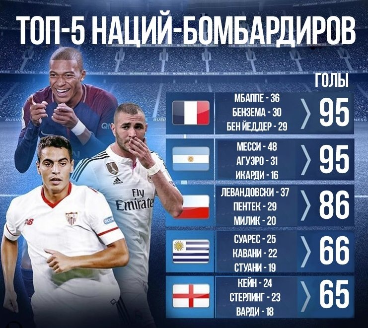 В итоге наиболее результативными игроками из клубов топ-5 лиг Европы оказались представители Франции, Аргентины, Польши, Уругвая и Англии.