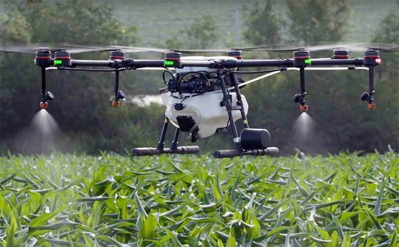 В первую очередь дрон используют для разбрызгивания жидкостей при ведении полевых работ. Хотя этим его возможности не ограничиваются. Конструкция предусматривает бак на 10 л. Этого хватит, чтобы в среднем обработать 4 – 6 тыс. кв. м. угодий. Коптер справится с этой задачей в несколько раз быстрее, чем человек без специального технического оснащения.