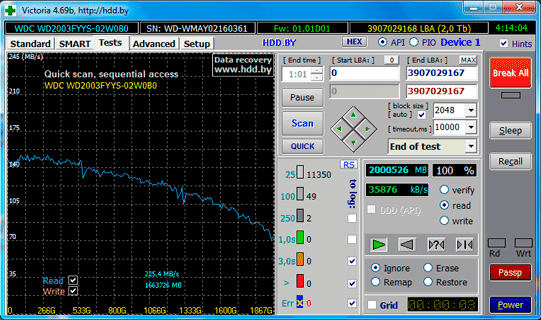 Функция Write в отличие от Erase не ищет нечитаемые сектора, а сразу перезаписывает весь блок нулями. Данная функция позволяет избавить HDD от плохих секторов, но вся информация на диске будет безвозвратно утеряна.