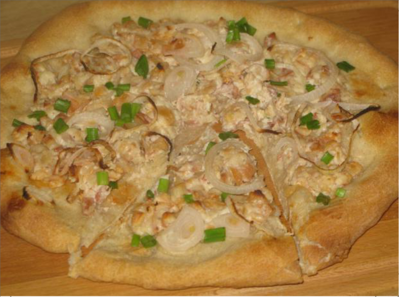 Пицца с крабовым мясом, каперсами и сливочным сыром на неаполитанском тесте для пиццы. На 1 пиццу Тесто для пиццы: 105 гр. хлебопекарной муки 0,25 ч.л. соли 0,75 гр. сухих дрожжей 75 мл. воды Начинка:
