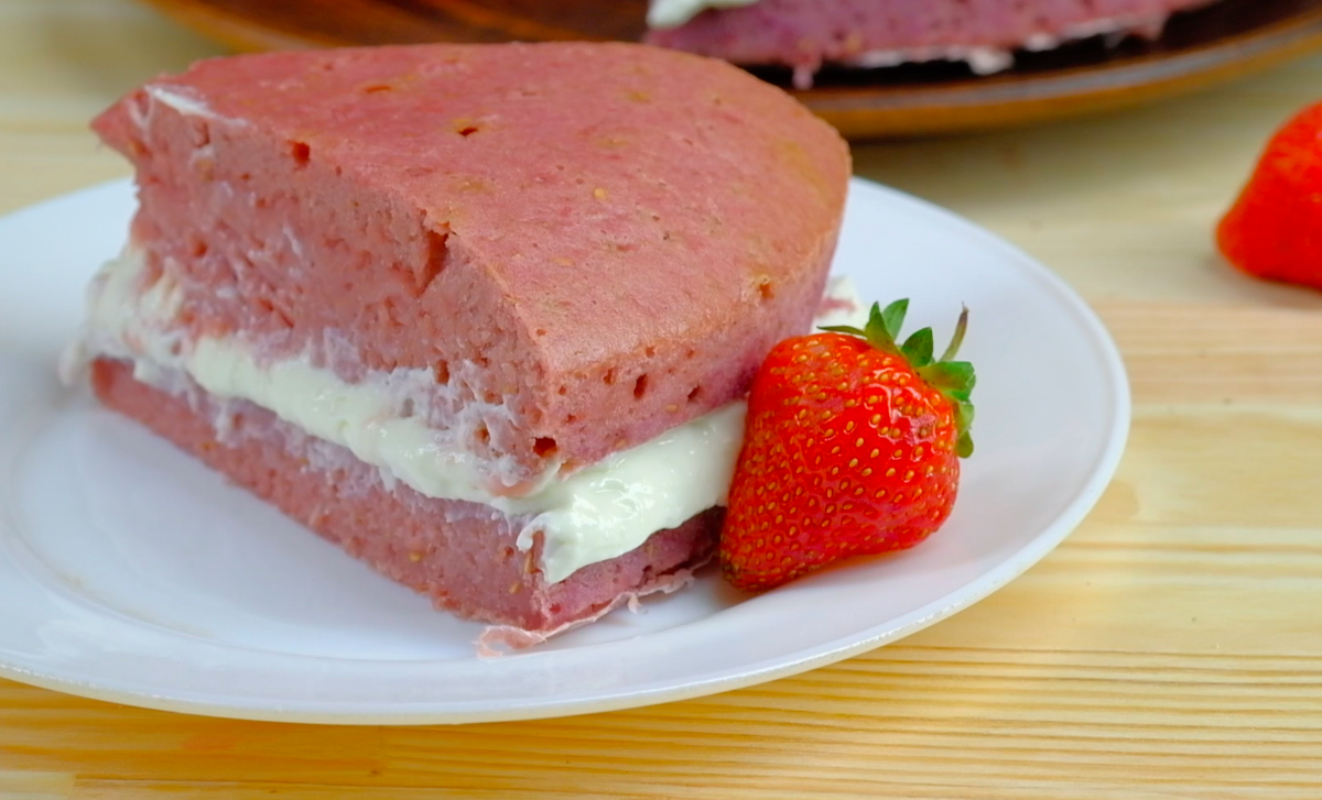 1) Готовим коржи: в блендере пюрировать клубнику и малину.