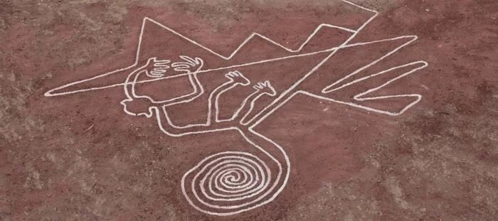 Это необычный рисунок из белой линии, которую вы можете увидеть, совершая перелет через южную пустыню Перу. Это известный объект всемирного наследия ЮНЕСКО, и древние странные образования имеют форму треугольников, прямоугольников, вихрей и трапеций. Если вы внимательно наблюдаете, то сможете увидеть 300 геометрических фигур, растительные структуры и 70 животных. Причина создания этих линий до сих пор не известна , но , по словам археологов, Наска индейцы делали линию Наски где - то между 500 г. до н.э. и 750 г. н.э.
