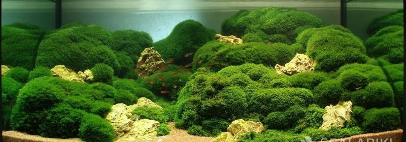 Не стоит набирать кучу всевозможных домиков, статуэток, ракушек и т.д. Естественный травник универсально радует глаз и не ставит рамок для творчества. Нужно учесть, что ракушки выделяют в воду кальций и не всем жителям это понравится. Рассмотрим интересную по своей природе Кладофору Иначе - шаровый мох, в Японии - маримо. В грунте не нуждается и очень неприхотлив. Представляет собой колонию водорослей (но не вредных), которая начинает расти от 22°C, но долго подвергать высоким температурам не стоит. -первую половину суток находится на дне; -в дневные часы при фотосинтезе накапливает кислород и поднимается на поверхность. Вот такой вот интересный "зверь". Промывать этот природный фильтр можно под проточной водой. Если аккуратно разрезать шарик, то полученный коврик отлично будет смотреться на коряге. Яванский мох Очень неприхотливый гидробионт, способен расти вне грунта: на корягах, камнях и декорациях. Любит своевременную подмену воды и фильтрацию, так как остатки пищи рыб заб