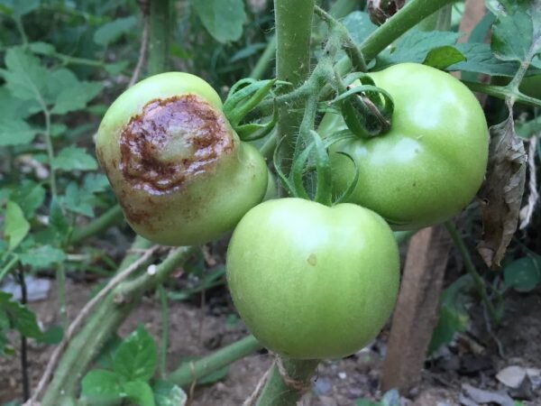 Фомоз повреждает только плоды. Помидоры чернеют около плодоножки. Из неё заболевание распространяется вглубь овоща. Томаты опадают несозревшими.