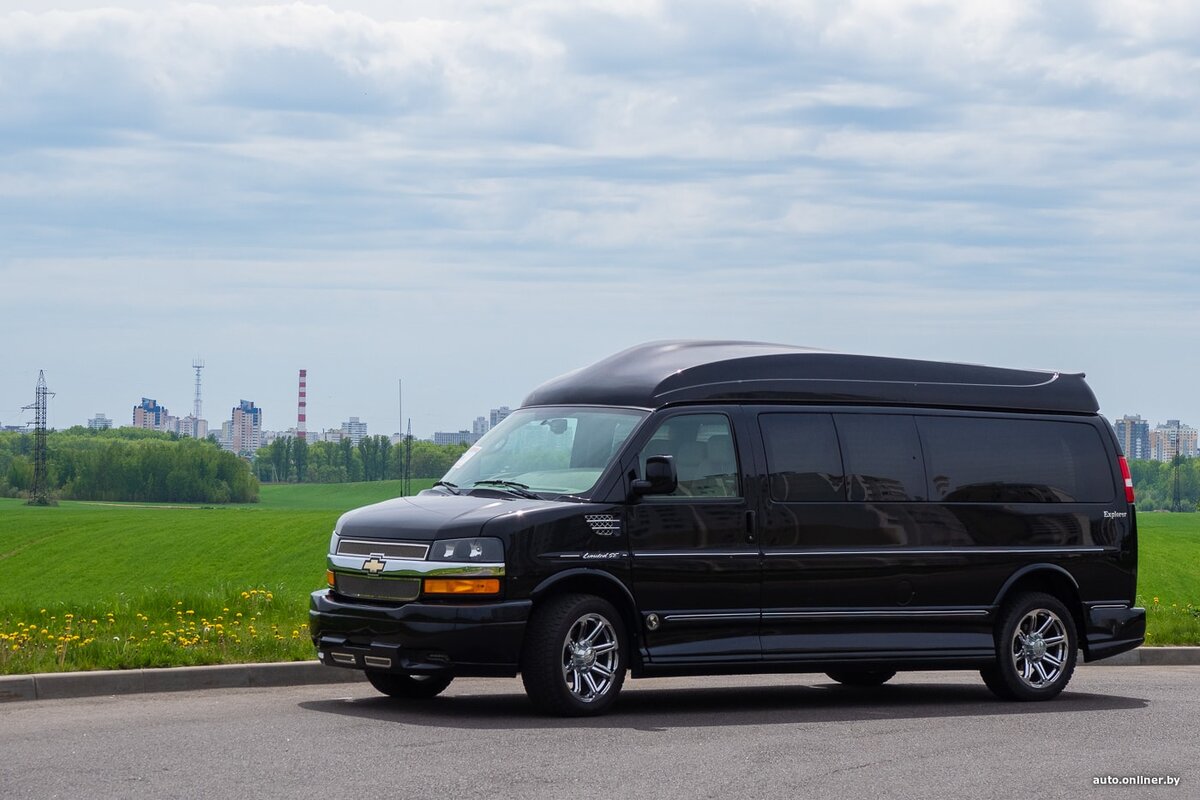 Что касается конкретно этого экземпляра, он сошел с конвейера в 2013 году, но за пять лет проехал всего 2500 миль. В Беларусь машину ввезли новой по заказу крупной компании. Использовался Express для трансфера важных людей из аэропорта. В таком исполнении General Motors не выпускала эту модель, а значит, данный автомобиль был доработан неким сторонним ателье. Предположим, что это одна из версий Depp AT Chevrolet Express Explorer. По крайней мере, «шильдики» совпадают.
