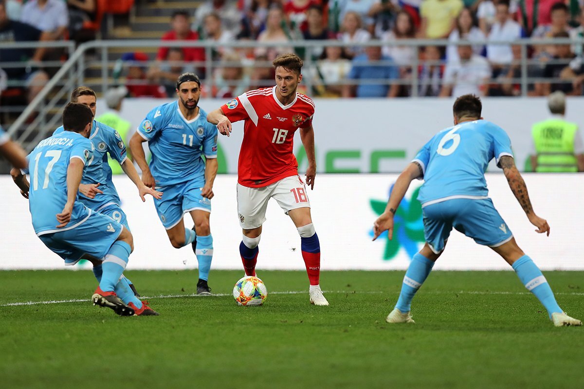 Конечно, та атмосфера, которая царит сейчас в сборной не может не настраивать на позитивный лад. Прошёл, конечно, почти месяц с момента двух отборочных игр, но они всё же были крайними, да и эмоции от этих матчей уже улеглись. Сначала в контрольном матче был обыгран футбольный клуб Чертаново со счётом 6:0. А затем уже наступил черёд рекордного матча с Сан-Марино. Делать какой-то обзор этой игры, наверное нет смысла, потому, что вопрос был только в тотале, а по итогу было все понятно с самого начала. Конечно, порадовал первый в истории покер Дзюбы, только конечно, сделай он его в матче с другим соперником, было бы гораздо ценнее. Почти 25 лет назад, сборная России уже встречалась с Сан-Марино, и тогда в гостевом матче установила рекорд по результативности, забив 7 мячей. Ворота той команды защищал нынешний тренер нашей сборной Станислав Черчесов. И вот он он вновь установил рекорд по результативности в матче с Сан-Марино, на этот раз в качестве рулевого нашей команды. Соперник не сопрот