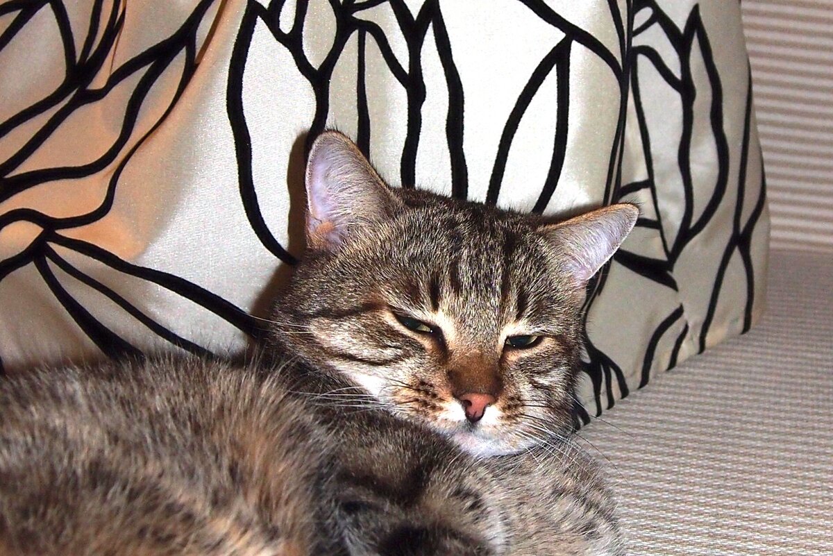 Вот - случайно сделанная фотография. Тимыч своим хвостом зацепил все нитки. Спрыгнул на пол и утянул их за собой.