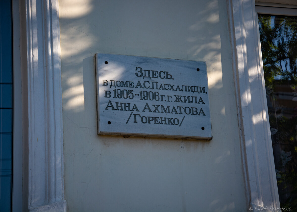 Прогуливаясь с друзьями по древней Евпатории, на одной из улочек в центре города, увидели на небольшом, старинном доме такую памятную доску. Фотографии можно увеличить, кликнув на них . Для тех, кто дочитает до конца публикацию, ждёт необычный сюрприз от Анны Ахматовой. Так случилось в жизни русской поэтессы Анны Ахматовой, одной из самых ярких, талантливых поэтесс Серебряного века , что, будучи ещё юной девушкой, проходящей курс предпоследнего класса гимназии, ей довелось целый год вместе с мамой, братьями и сёстрами жить в нашем крымском городе Евпатория. Не буду здесь подробно описывать этот период жизни Анны Горенко (Ахматовой), довольно тяжёлый для неё. "Больничные молитвенные дни" - так впоследствии назовет Анна Ахматова дни, прожитые в Евпатории. Поселилась семья Горенко в четырехкомнатном доме купца Анания Савельевича Пасхалиди, который сняли за весьма умеренную сумму. "Живу в доме Пасхалиди, на въезде в город, последний дом ..." писала Анна в а
