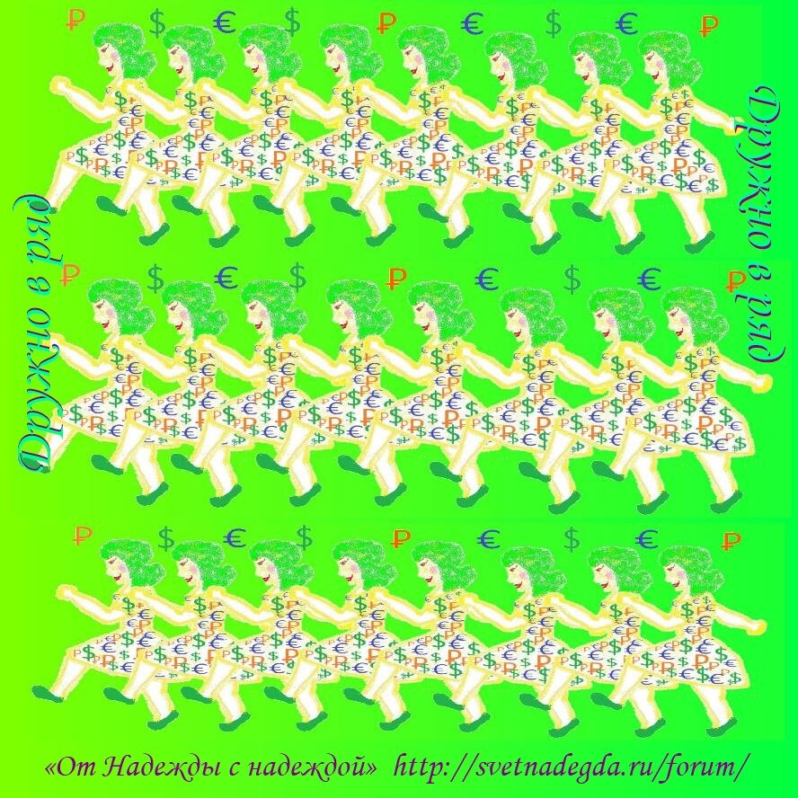 -Кто шагает дружно, в ряд? -Веселых денежек отряд! -Вы куда же так спешите? И к кому сейчас бежите? -Мы идёт к тому, что верит, Что весельем нас наделит, И к тому, кто понимает, Денежки всегда играют! Хочешь с нами поиграть? Улыбайся, будешь знать, Что веселье любят всё, Здесь счастливые в цене. Станешь счастье излучать, Станешь деньги получать. -Кто шагает дружно, в ряд? - Денег радужный отряд! Хочешь с нами вдаль шагай, Получай и умножай. -Кто шагает дружно, в ряд? -Мы с деньгами, говорят, Что мы дружная команда. Это истинная правда! Весело нам вместе жить, Умножать добро, любить Всё что в жизни нашей есть. Мы всегда готовы здесь Радовать своих друзей. Подружись с нами скорей.