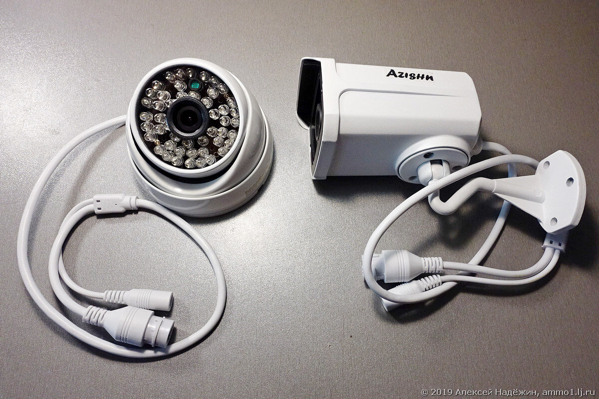 Камеры называются AZISHN, в них установлен 2.19-мегапиксельный сенсор SONY IMX323, дающий отличную картинку FullHD днём и приемлемую ночью. Металлические герметичные корпуса позволяют использовать их как в помещении, так и на улице.