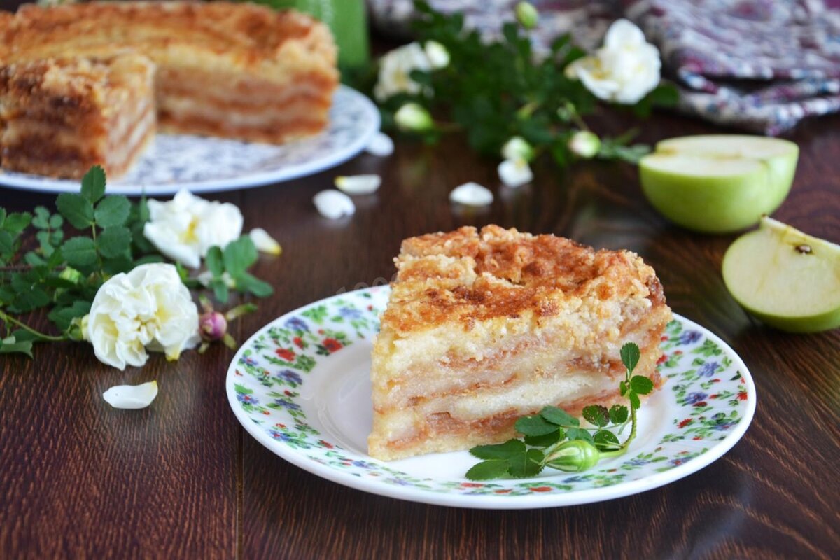 4. Яблоки используйте сочные, кисло-сладкие. Выделившимся при натирании соком, полейте каждый слой из яблок. Пирог получится более сочным.