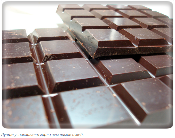 Плохое настроение? Есть шоколад. Болит голова? Шоколад снимет боль. Хотите вылечить сердечно-сосудистую систему? Кушайте шоколад! Теперь есть еще одна причина любить шоколад - он может помочь успокоить кашель. Где-то в США проводили исследование, в котором показали, как лекарство от кашля, содержащее какао, лучше лечит кашель, чем традиционные средства. В исследовании учавствовали несколько людей. Установлено, что пациенты, принимающие лекарство на основе шоколада, перестали кашлять в течение 2 дней. Исследователи из Имперского колледжа в Лондоне тоже обнаружили, что алкалоид в шоколаде, лучше справляется с кашлем, чем кодеин (это вещество содержит большинство сиропов от кашля). Шоколад снимает воспаление и раздражение, он покрывает нервные окончания в горле, которые вызывают желание кашлять лучше, чем мед или лимон. К сожалению, пить горячий шоколад - не имеет такого-же эффекта, как плитка шоколада, поскольку горячий шоколад не контактирует с горлом достаточно долго, чтобы сфо
