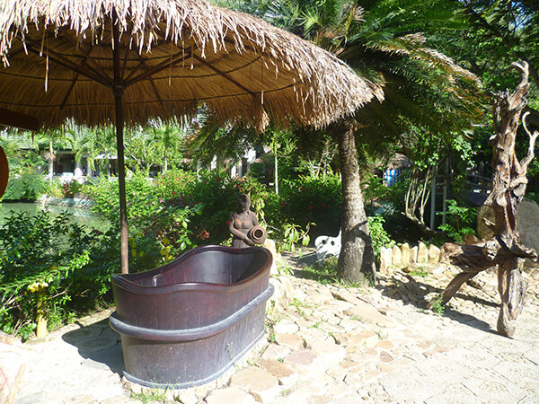 Однажды во время путешествия по Вьетнаму, проснувшись утром, посмотрела в окно. И как тот Робинзон, подумала: «Опять море…». Вроде и не надоело, но захотелось разнообразия. И я его сполна получила, облившись грязью и искупавшись в горячей минеральной воде источника Тхап Ба. Уютное такое местечко в окрестностях Нячанга. Без древней истории, но с удивительными тропическими растениями и цепочкой бассейнов. Лучшее время – сезон дождей До самого источника городской транспорт не доходит, но можно доехать на автобусе до башней Понагар. Оттуда, ориентируясь на указатели, пешком до Тхап Ба будет примерно 2,5 км. Но я не стала тратить время и взяла такси. Через 15 минут - уже на месте, стоимость поездки – 6 долларов. В переводе на местную валюту – 140 тысяч донгов. Грязелечебница открывается в 7 утра. Я приехала рано, и мне удалось побыть в этом райском местечке в полном одиночестве. Говорят, что лучшее время для посещения источника – ноябрь. В этом месяце вовсю идут дожди. Поэтому приятно погре