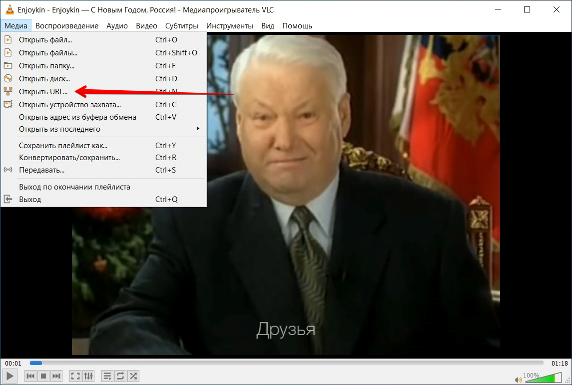 Для воспроизведения подкастов в VLC, проделайте следующее: