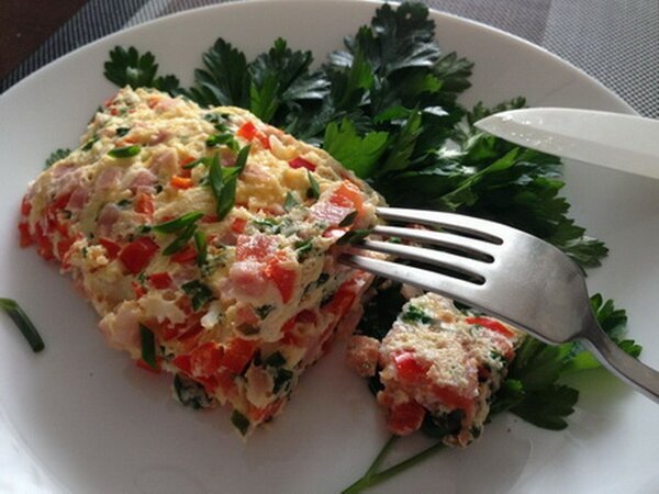 Всем доброе утро . Сегодня я проснулся с утра и решил вас чем то удивить новеньким и очень простым, я даже сам не представлял что получится так вкусно. Странно кому это пришло в голову, варить омлет в пакете. Блюдо готовится без масла, поэтому и получается легким. Ну все хватит болтать, начнем готовить, что нам понадобится для этого блюдо. Возьмем с десяток яиц, грамм двести любой колбасы( можно как вареную, так и копченую). Также надо взять пару помидор, один болгарский перец, можно взять капельку острова перца, возьмем немного кетчупа и сметаны, а также соль и перец. Ну про зелень я забыл напомнить (укроп и лук). Но и сыр как можно больше. Теперь приступим, разобьем яйца , смешаем их с кетчупом и майонезом, а теперь все надо взбить. После этого все наши овощи нарезать кубиками наши овощи, натрем сыр на терке и все смешаем, посолим и поперчим. Теперь возьмем пакет по плотней и выльем в него содержимое и завяжем. Теперь возьмем кастрюлю, наберем воды и доведем до кипения, а после пост