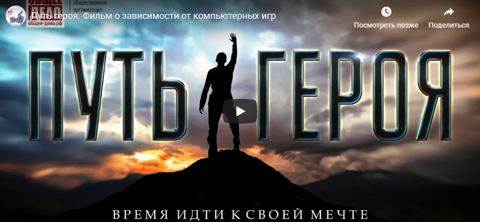 Фильм «Путь героя» посвящен компьютерной зависимости. Он рассматривает разные аспекты жизни молодёжи и мотивирует на развитие навыков и способностей, на постановку целей и задач в своей собственной жизни. Фильм показывает, что самая интересная игра — это реальная жизнь человека, и он и есть настоящий герой.
