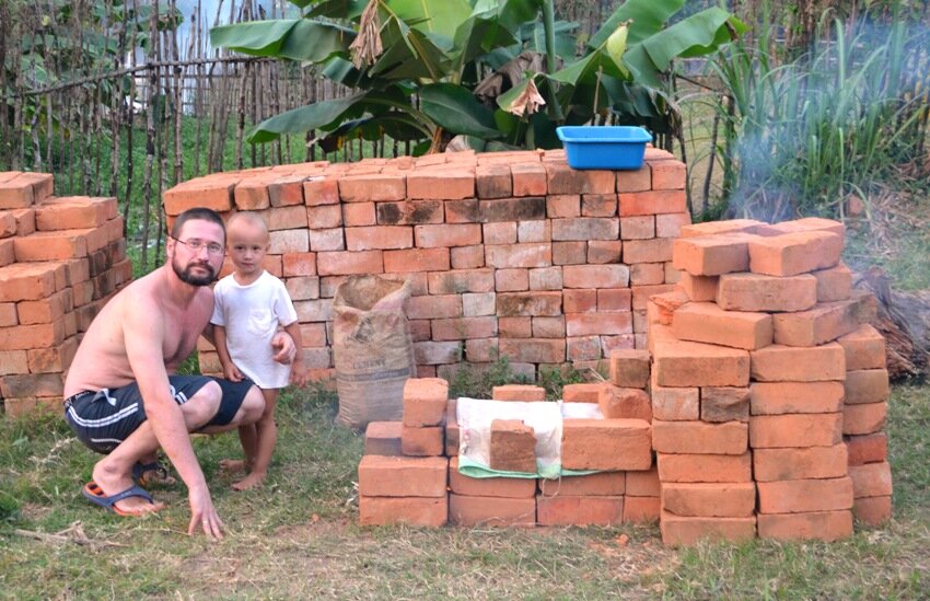 Решили с Ванюшей изготовить научно-испытательную коптильню. Благо кирпичей на дворе полно.