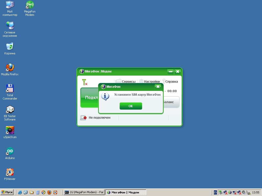3. Запускаем. У мегафоновских модемов появляется сообщение "Установите sim-карту Мегафон".