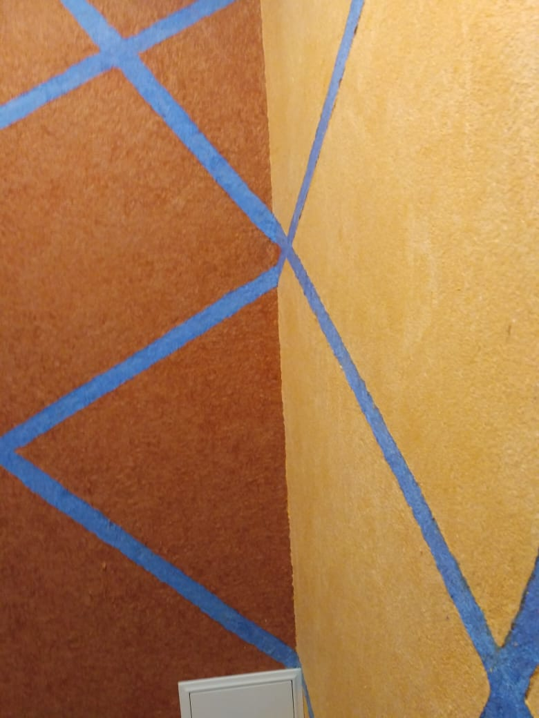 Хочу рассказать об опыте использования жидких обоев в отделке стен. Были куплены целлюлозные жидкие обои для небольшого помещения — холл перед санузлами. Выбран этот материал был по трём причинам: - стены, обшитые гипсокартоном, не требовали финишной шпатлевки — жидкие обои прекрасно скрыли швы и все мелкие неровности. Потребовалась только акриловая грунтовка; - легкость нанесения — хозяйка дома наносила обои сама. Опыта у неё было ноль. Несмотря на это, покрытие получилось равномерным и красивым. - внешний вид стен — результат был именно такой, какой обещал на картинках производитель обоев. Яркая фактурная поверхность, к тому же приятная на ощупь. Работа оказалась несложно и интересной: разводить и наносить шпателем кашицу, у которой нет запах, от которой нет грязи — не то, что краска и штукатурка. Большое преимущество! Результат порадовал: Напомню, что помещение без излишней влажности. Обои не продержались в своём виде и года: Виной тому — уборка. Не выдержали частой уборки. Сначала