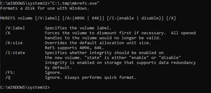 Сегодня я снова вернусь к разговору о дисковых пространствах. Ранее я уже поднимал эту тему. О причинах для перехода на эту файловую систему мы поговорим в другой раз. Сегодня я расскажу как отформатировать том в файловой системе REFS. Я предполагаю, что вы уже прочитали мои прошлые заметки о Storage Spaces и умеете создавать том. Начиная с Windows 10 1709 Microsoft убрала поддержку создания и форматирования томов в файловой системе REFS. Теперь этот функционал доступен в Windows 10 Professional for Workstation и Windows 10 Enterprise. Но не было-бы этой заметки, если-бы не было вариантов обхода. Способ первый: mkrefs