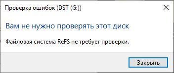 Когда я начинаю говорить о REFS, я обычно слышу схожие вопросы, поэтому попробую их обобщить: Преимущества Отказоустойчивость. REFS поистине защищена от сбоев: Если мы рассматриваем простой том, то метаданные хранятся в двух экземплярах и контролируются контрольными суммами. перед каждой операцией чтения/записи, данные проверяюся на наличие ошибок и корректируются при необходимости. Раз в четыре недели запускается задание, в фоновом режиме сканирующее том на наличие повреждений. Исправления вносятся на лету. Поэтому при попытке натравить проверку диска на такой том, получим сообщение: По умолчанию потоки целостности включены только для метаданных — это позволя