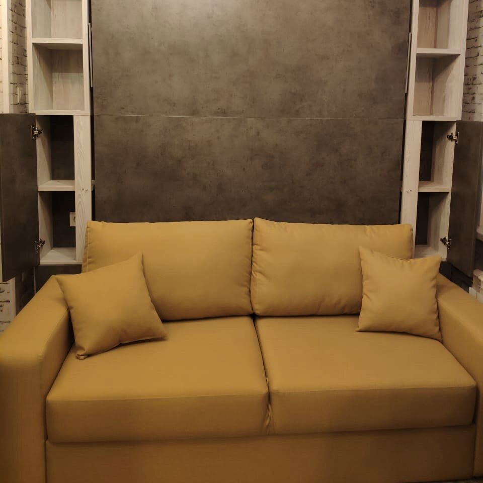 В начале Апреля к нам обратилась пара, которая хотела обустроить гостиную комнату в своей двухкомнатной квартире, для этого они приняли приобрести модуль Шкаф-кровати с диваном (так называемый модуль 3в1). В конструкции Шкаф-кровати ничего особенного не было, за основу взяли модель BSS-11s, но вот к оттенку заказчики (в частности Анастасия) подошли с особым интересом.