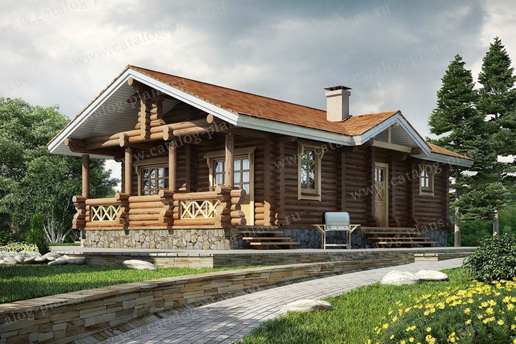 Проект одноэтажного дома 69 м² из оцилиндрованного бревна