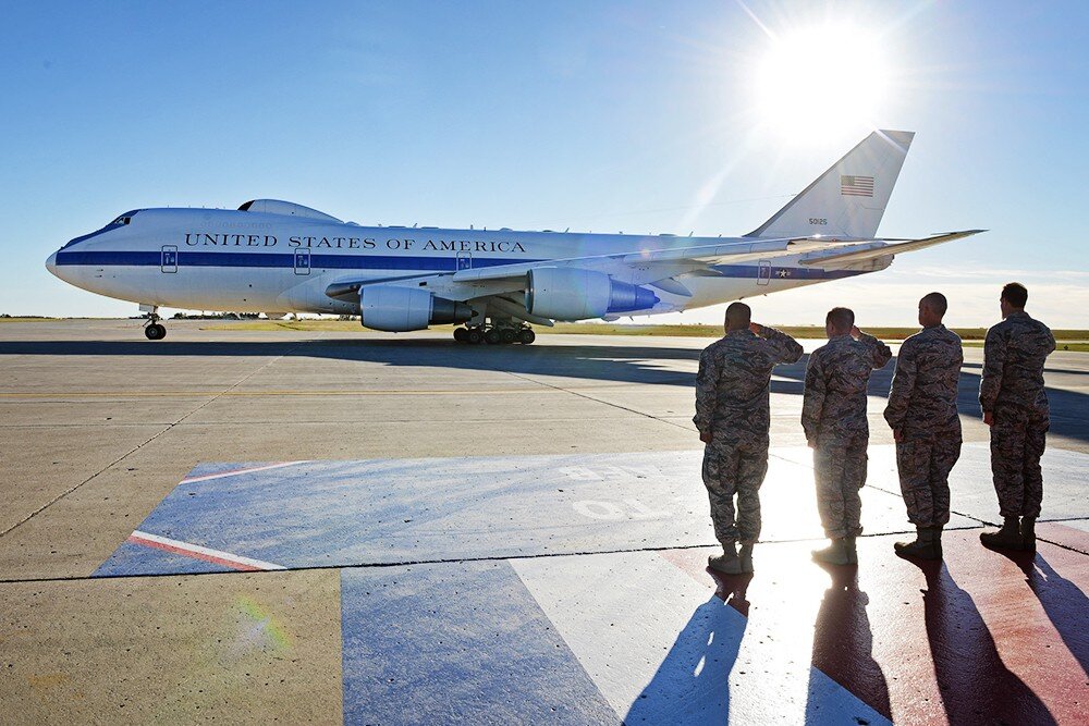 Американский Е-4В Nightwatch "Ночной дозор" Военными доктринами ядерных держав предусматривается наличие самолетов - воздушных командных пунктов на случай ядерного конфликта. Естественно, если такое произойдет, то это будет конец цивилизации на Земле. Поэтому к ним больше пристало наименование "Самолёты Судного дня". На разговорном английском: «doomsday planes» (самолёты конца света). Американцы бывают точны в своих определениях, например, наша система "Периметр" у них поименована как "Мёртвая рука". Является воздушным командным пунктом в ядерном конфликте, используется и в мирное время. Возит по зарубежью президента Америки, министра обороны с ядерным чемоданчиком. Разработан на базе Boeing - 747-200. В эксплуатации с 1974 года, выпущено 4 машины. Название «Nightwatch» "Ночной дозор" было дано самолётам E-4B в честь дозора народной стражи, идущего по ночному городу с известной картины Рембрандта. Является воздушным командным пунктом в ядерной войне. Дальность полёта 11000 км. Пр